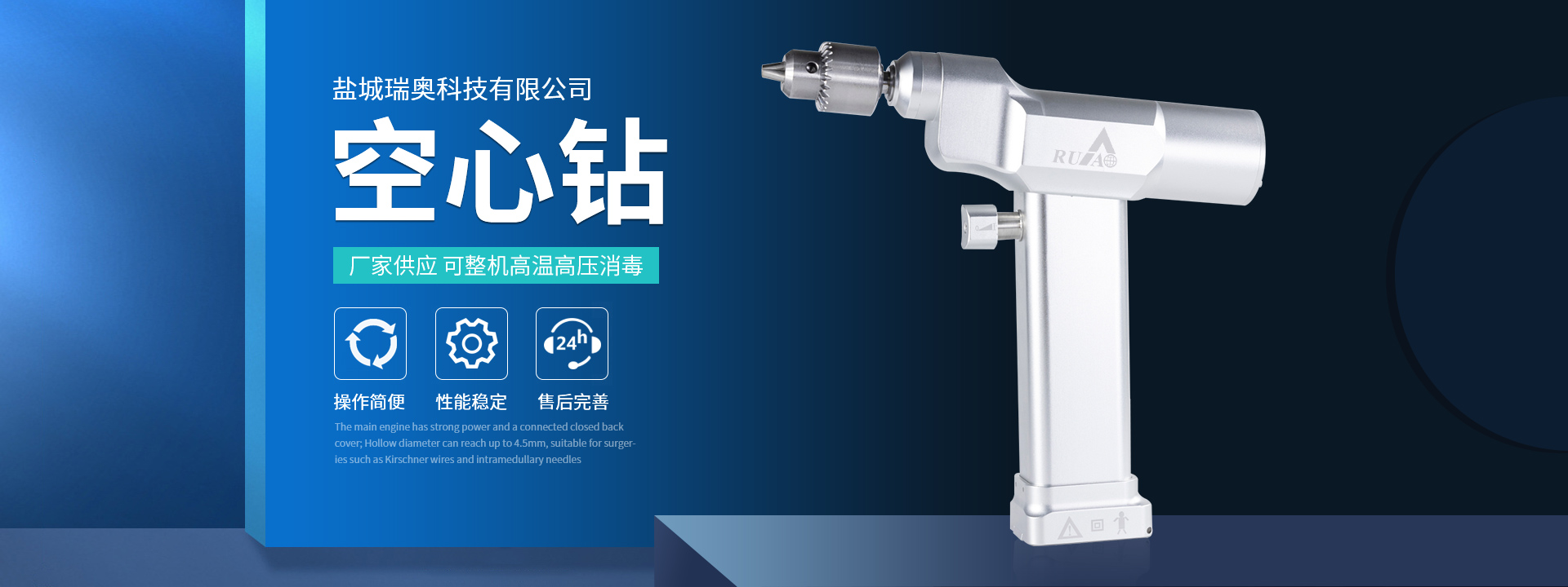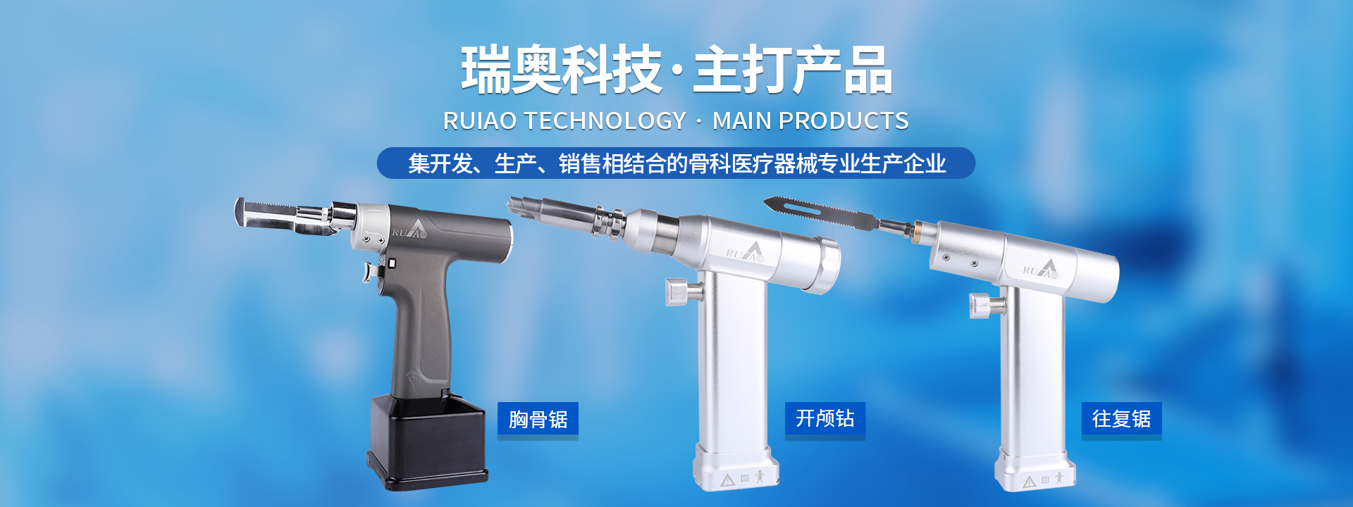 鹽城瑞奧科技有限公司主要產(chǎn)品:醫(yī)用電動鋸鉆系列(可高溫高壓消毒和熏蒸消毒兩種):包含骨鉆、擺鋸、胸骨鋸、空心骨鉆、開顱鉆、顱骨銑等等,適用于骨科、腦外科、神經(jīng)外科、胸外科、手足及顯微外科、脊柱外科、整形外科等各種手術(shù)的要求。電動石膏鋸可切割高分子繃帶、石膏等。基礎(chǔ)器械系列:咬骨鉗,髓核鉗,椎板咬骨鉗,持骨鉗,四肢骨折手術(shù)器械包等。